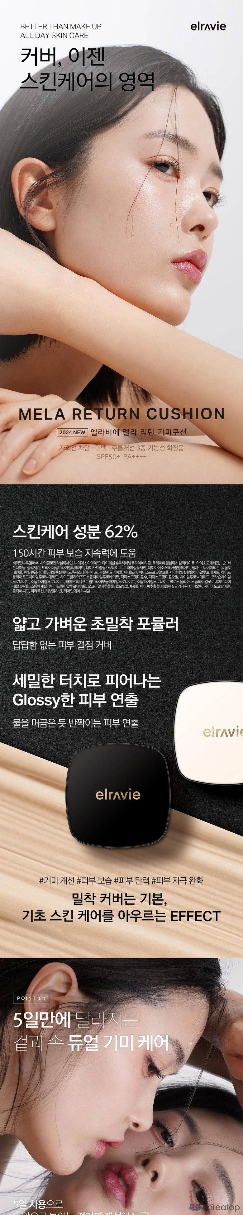 Elravie Mela Return Dual Freckle Cushion, стойкость 150 часов, улучшает состояние как внешних, так и внутренних веснушек, SPF50+ PA++++, № 21, черная версия, 1 шт.