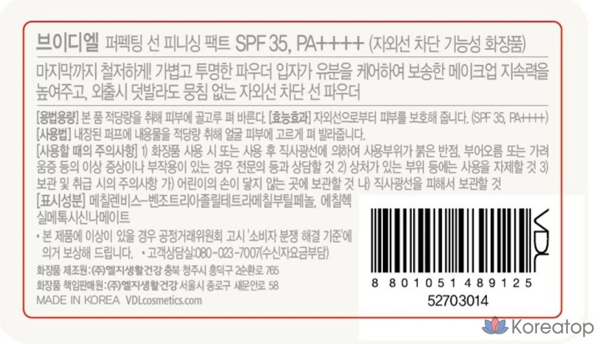 Солнцезащитная пудра VDL Perfecting Sun Finishing Pact SPF35 PA++++, 11 г, 1 шт.