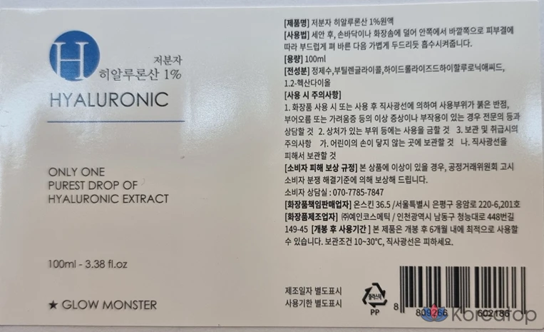 Низкомолекулярная гиалуроновая кислота 1% концентрат Vegan Beauty Glow Monster, 100 мл