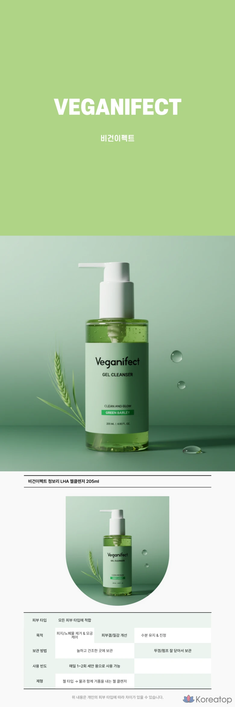 Гель для умывания Veganifect Clean & Glow с зеленым ячменем, 205 мл, 1 шт.