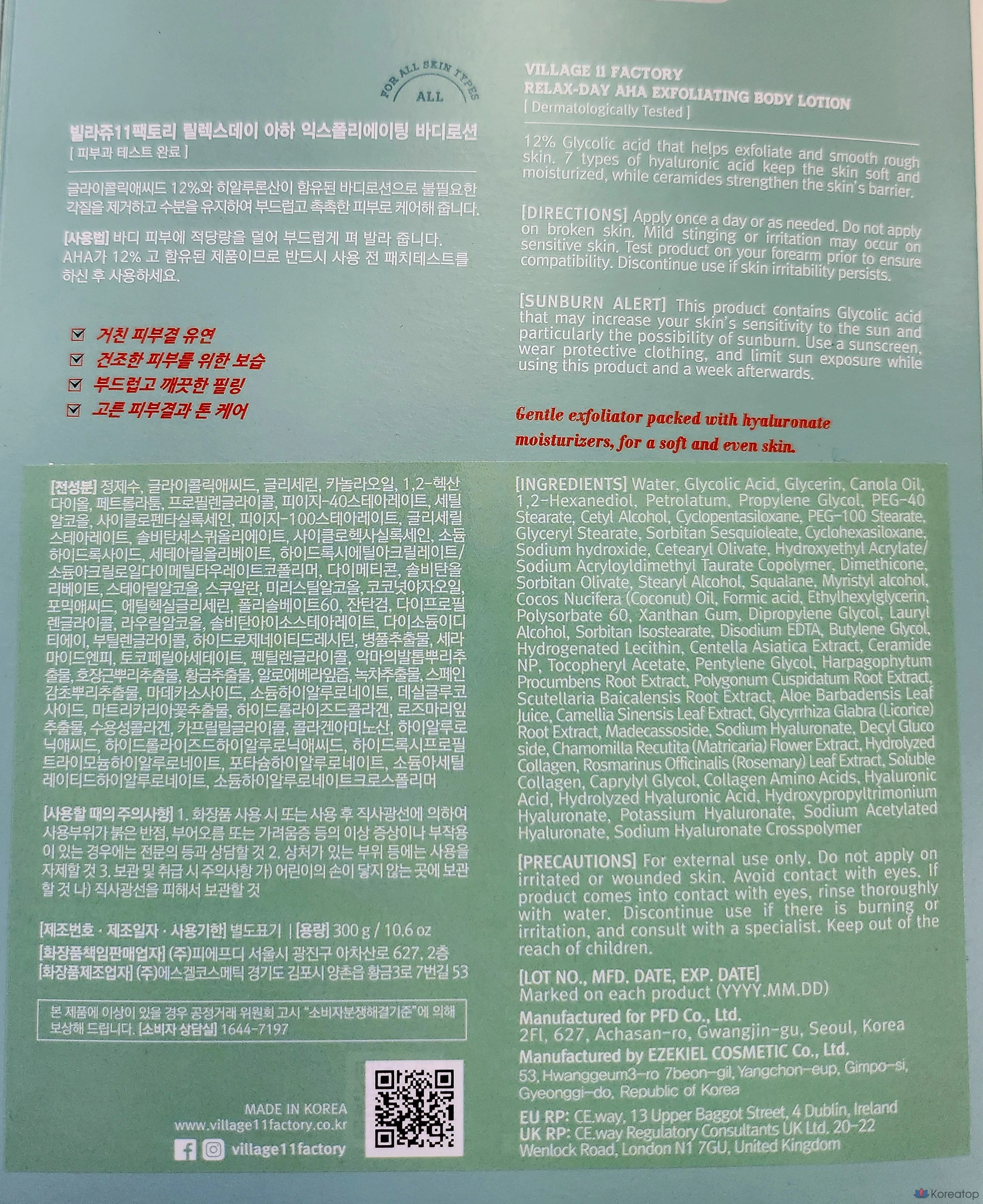 Отшелушивающий лосьон для тела Village 11 Factory Relax Day AHA, 300 г, 1 шт.
