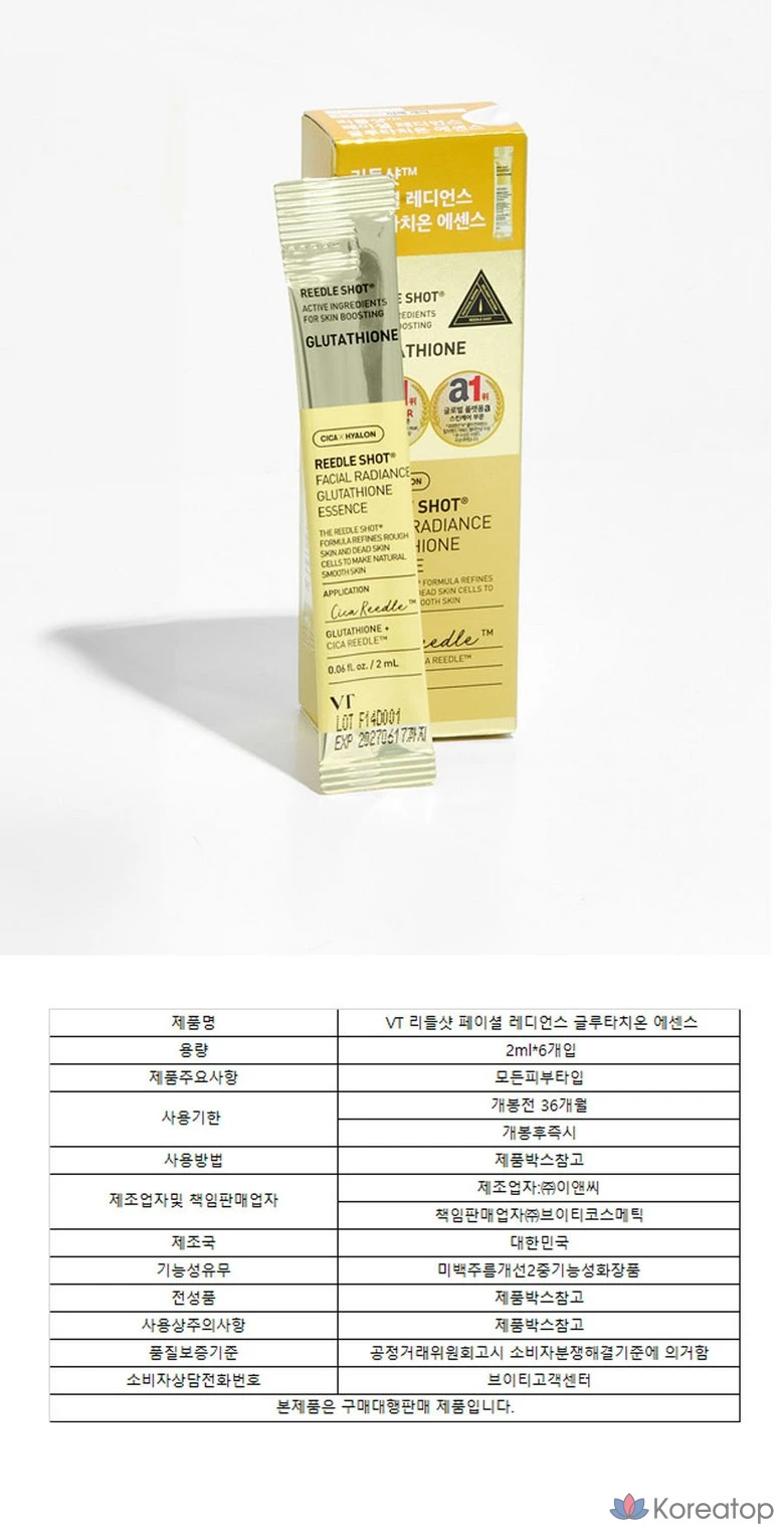 Эссенция VT Riddleshot Facial Radiance Glutathione Essence, 2 мл x 6 шт. VT Whitening, секрет отбеливания для длительной кожи, увлажняющий крем, питательный крем, увлажняющий крем, разглаживание морщин, сужение пор, базовый уход, уход за кожей, ночной уход, 6 шт., 2 мл