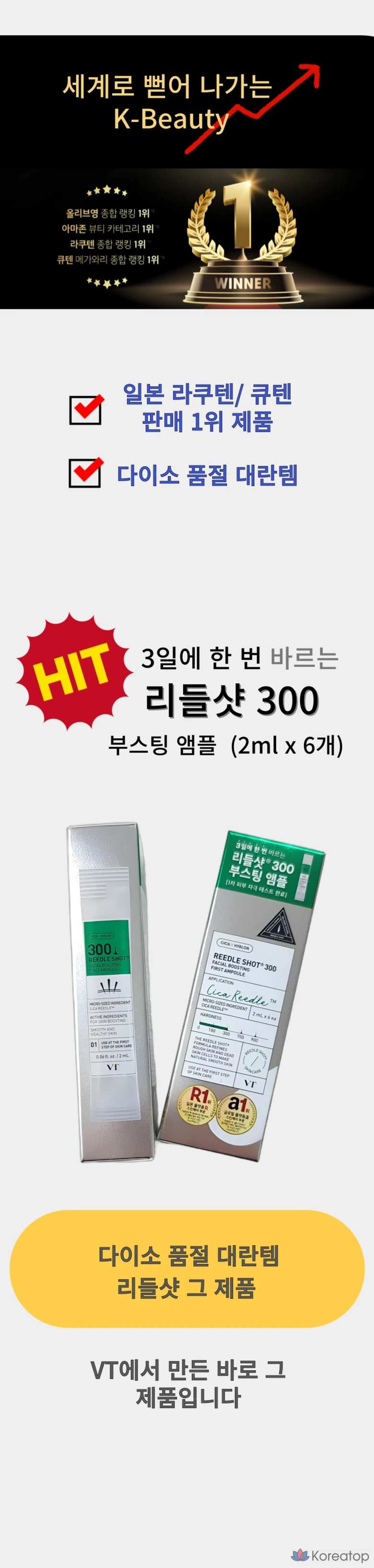 [J&D] Ампулы для усиления эффекта Daiso VT Riddle Shot 300 VT, индивидуально упакованные, 36 штук, 2 мл