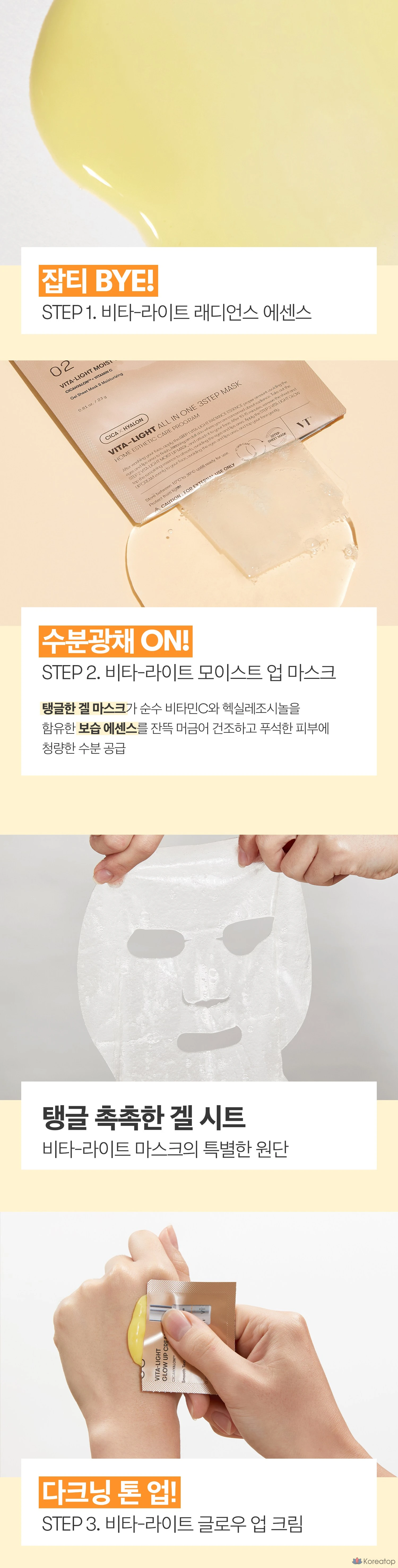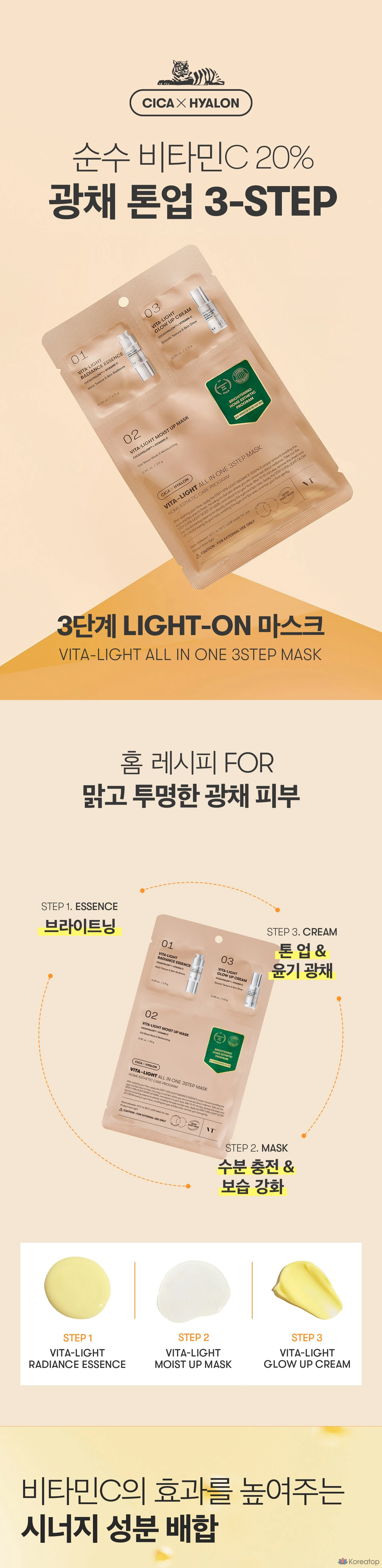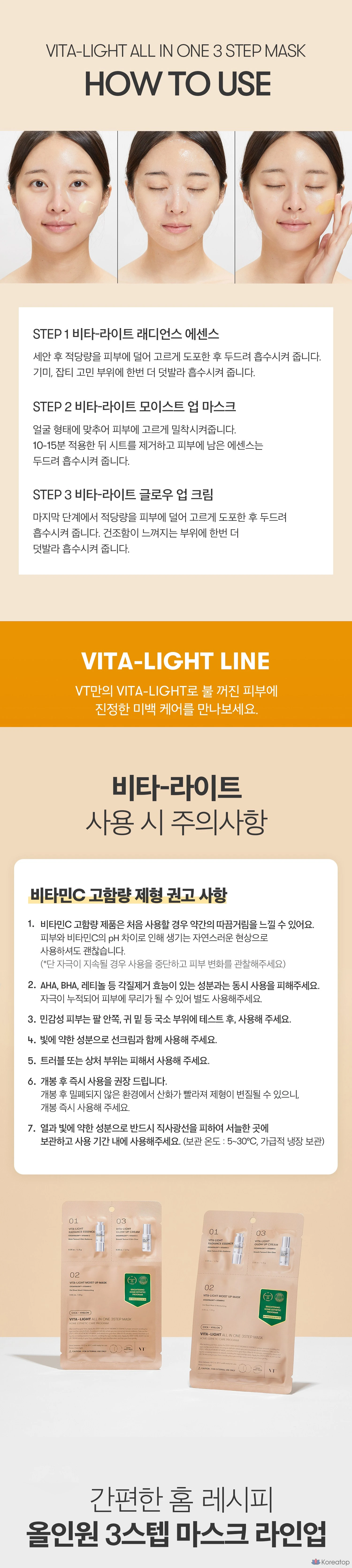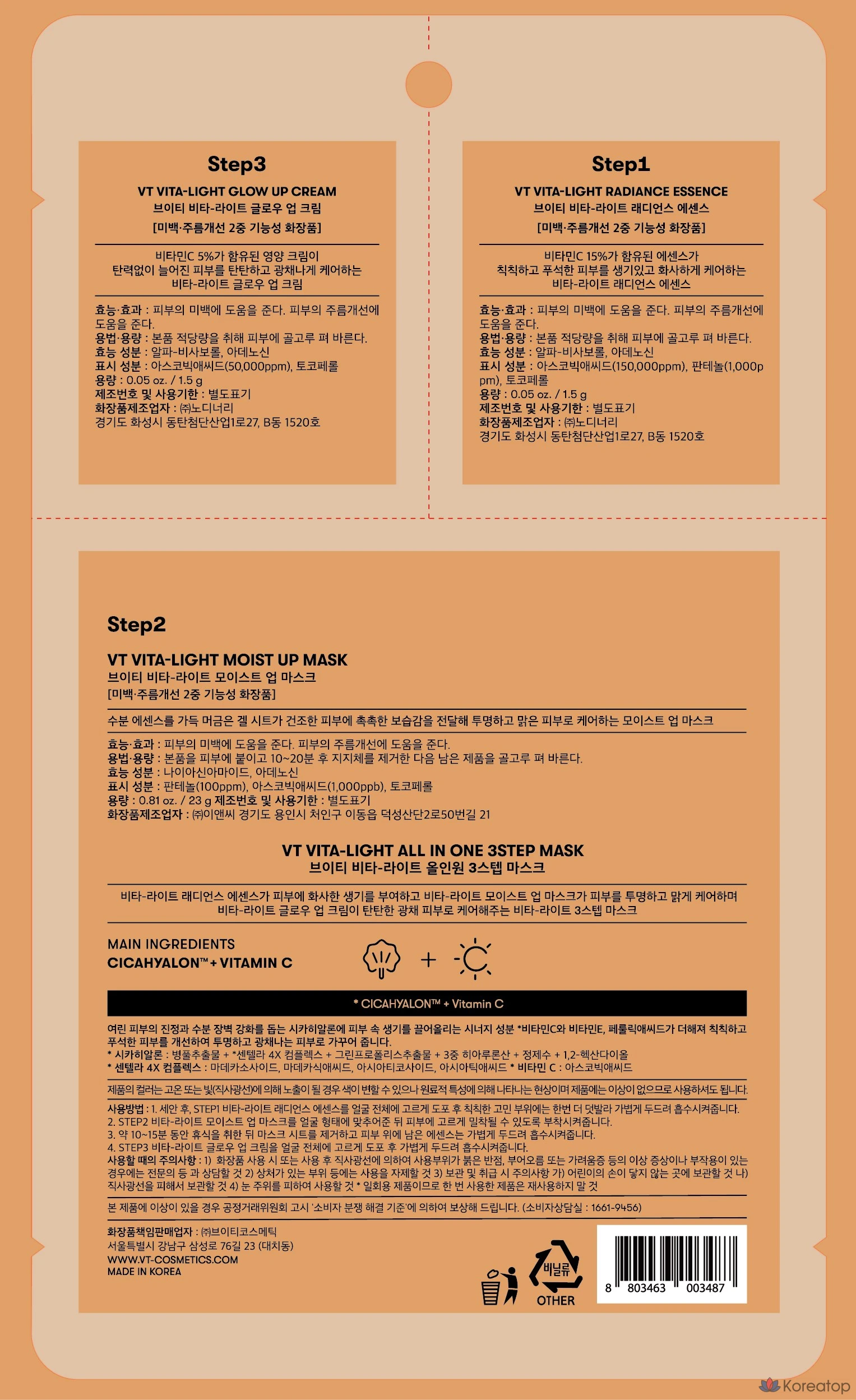 Маска VT Cosmetic Vita Light All-in-One 3-Step Mask предлагает комплексный уход за кожей в удобном формате. Она включает три этапа: очищение, увлажнение и осветление, что делает её идеальной для использования в любое время. Благодаря натуральным ингредиентам, маска обеспечивает мягкое воздействие и подходит для всех типов кожи. Используйте её, чтобы придать лицу свежий и сияющий вид, а также для поддержания оптимального уровня увлажненности. Эта маска станет отличным дополнением к вашему ежедневному уходу за кожей. 🌿✨