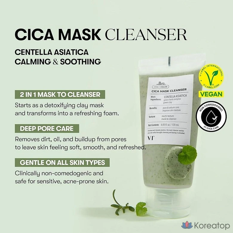 Эта очищающая маска CICA от VT COSMETICS предлагает уникальный 2-в-1 подход к уходу за кожей, сочетая в себе функции умывания и маски. Она мягко очищает поры, не пересушивая кожу, что делает её идеальной для чувствительной и склонной к акне кожи. Благодаря своей глиняной основе, маска эффективно отшелушивает и увлажняет, оставляя кожу свежей и обновлённой. Используйте её для достижения мягкой и здоровой кожи, наслаждаясь комфортом и заботой, которые она обеспечивает. 🌿