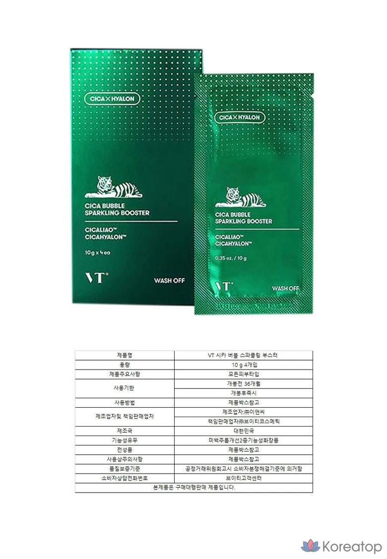 VT Cica Bubble Sparkling Booster 10 г x 4 шт. VT Cica Mask Pack, смываемая маска, увлажняющая маска, увлажняющий крем, питательный крем, успокаивающий кожу, базовый уход, уход за кожей, ночной уход, базовая косметика, секрет молодой кожи, спрей для сияния кожи