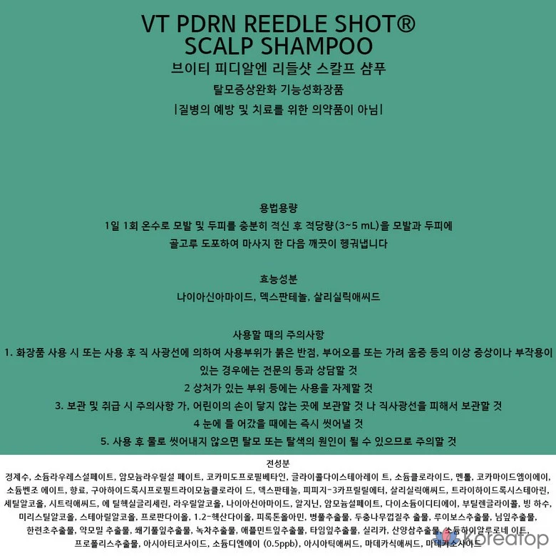 Шампунь VT Cosmetic PDRN Riddle Shot Scalp разработан для интенсивного ухода за кожей головы. Его уникальная формула с PDRN способствует укреплению и восстановлению волос, обеспечивая им здоровый вид. Натуральные ингредиенты и увлажняющие компоненты делают волосы мягкими и послушными. Идеально подходит для ежедневного использования, обеспечивая свежесть и комфорт на весь день. 🧴✨