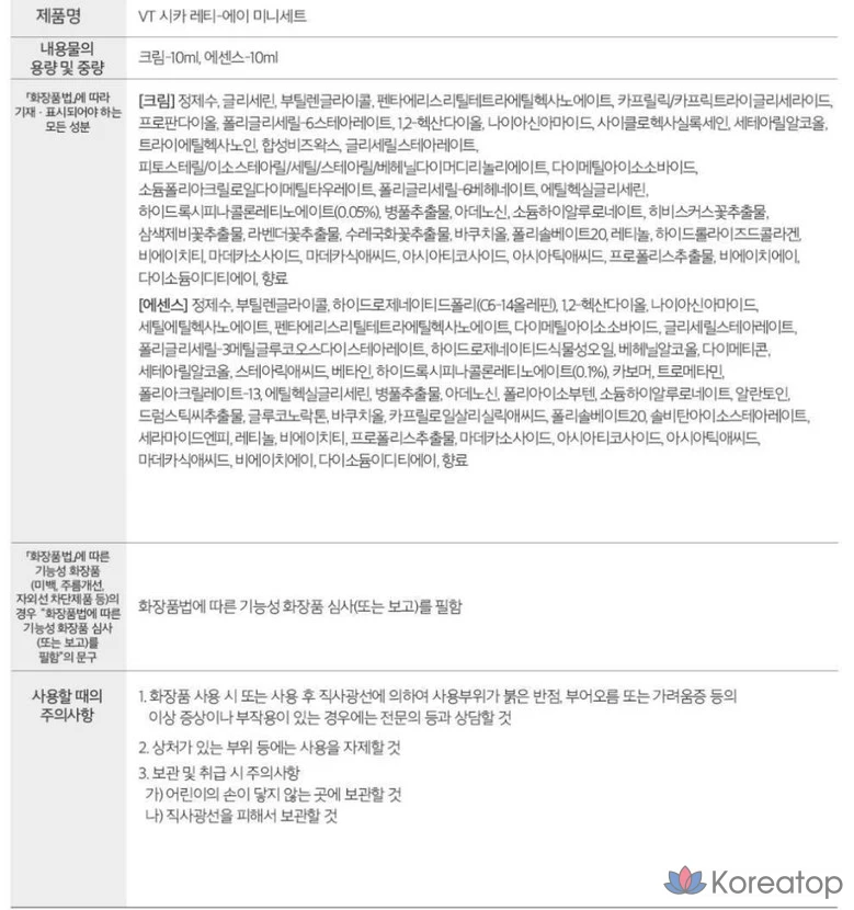 VT Cosmetics Cica Reti A Mini Set 10ml