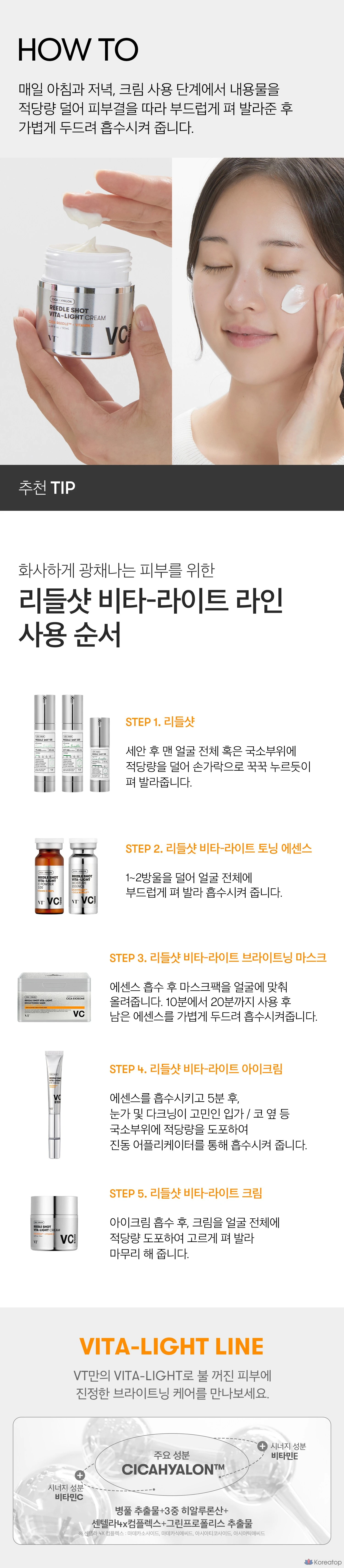 VT Cosmetics Riddle Shot Vita Light Cream — это инновационный крем, который помогает осветлить и выровнять тон кожи. Благодаря натуральным ингредиентам и витаминам, он обеспечивает глубокое увлажнение и питание. Легкая текстура крема быстро впитывается, не оставляя жирного блеска, что делает его идеальным для ежедневного использования. Этот продукт подходит для всех типов кожи и помогает поддерживать её здоровье и сияние каждый день. 🌟