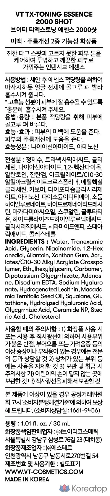 VT Cosmetics TX Toning Essence 2000 доз