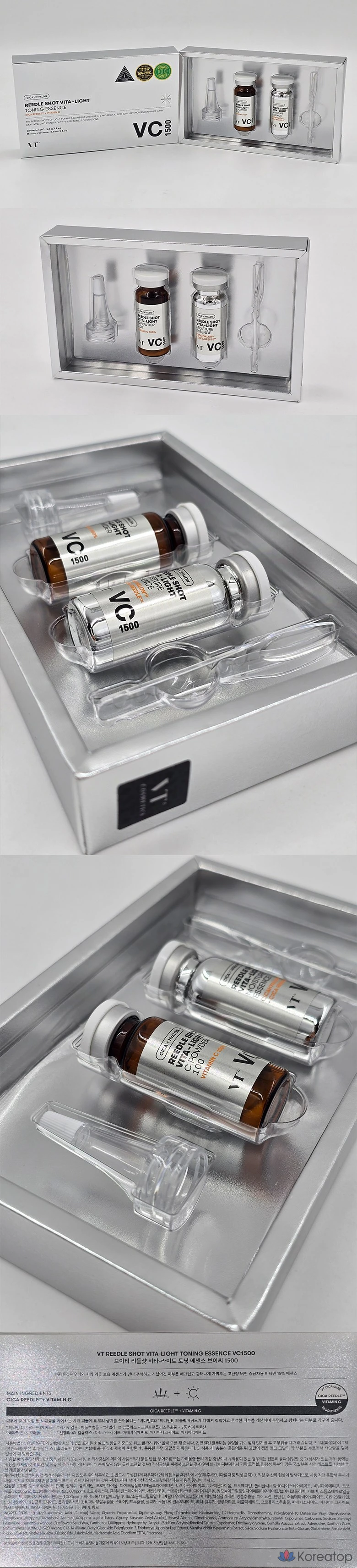 VT Riddle Shot Vitalight Toning Essence VC1500 C Powder 100 1,5 г + Moisture Essence 8,5 мл. Высококонцентрированная эссенция с витамином С 15%, отбеливающая и сияющая, 3 шт., 10 мл