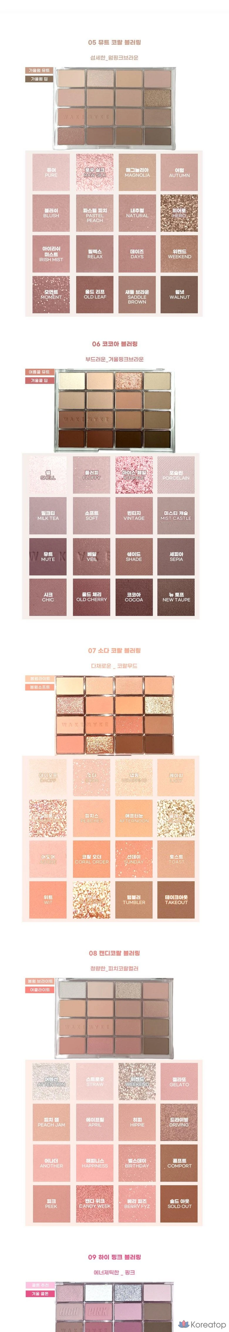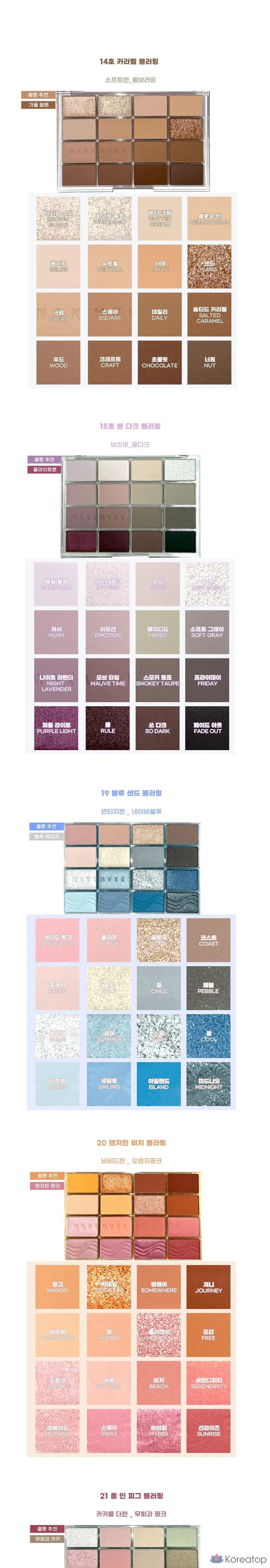 Палетка теней для век WAKEMAKE Soft Blurring Eye Palette, 20 оттенков, оттенок Tangerine Beach Blurring, 1 шт.