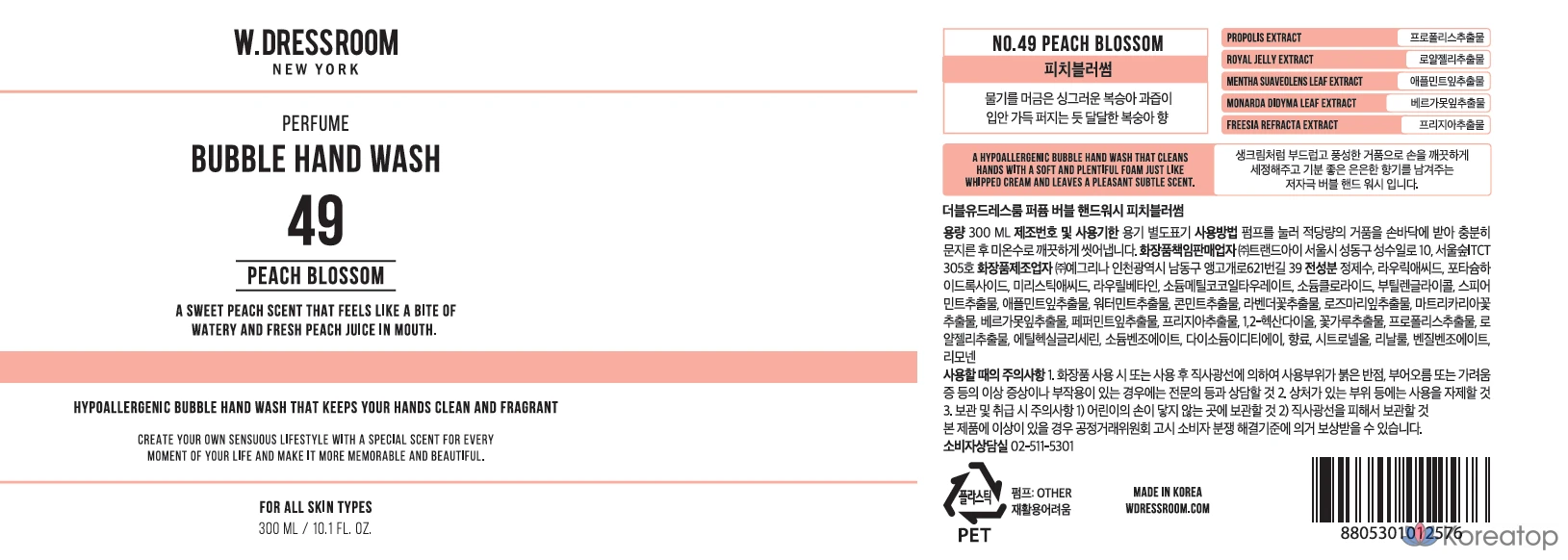 Жидкое мыло для рук W.Dressroom Perfume Bubble Hand Wash со вкусом персикового цветка, 300 мл, 1 шт.