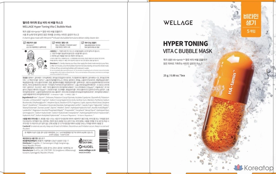 Пузырьковая маска для лица WELLAGE Hyper Toning Vita C, 5 шт., 1 упаковка