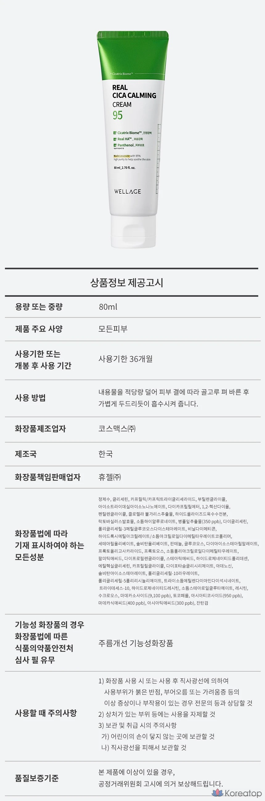 Успокаивающий крем Wellage Real Cica 95 создан для восстановления и защиты чувствительной кожи. Благодаря высокому содержанию экстракта центеллы азиатской, он эффективно успокаивает раздражения и укрепляет кожный барьер. Легкая текстура крема быстро впитывается, не оставляя жирного блеска, что делает его идеальным для ежедневного использования. Подходит для всех типов кожи, особенно для чувствительной и склонной к покраснениям. 🌿