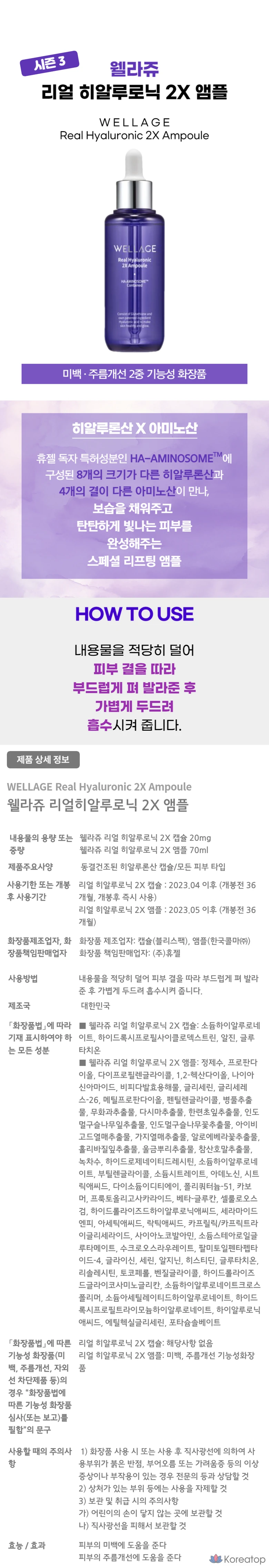 Wellage Лиофилизированная гиалуроновая кислота, капсулы-ампулы с гиалуроновой кислотой, 3 сезон, 61 доза, ампула 70 мл, 1 шт.