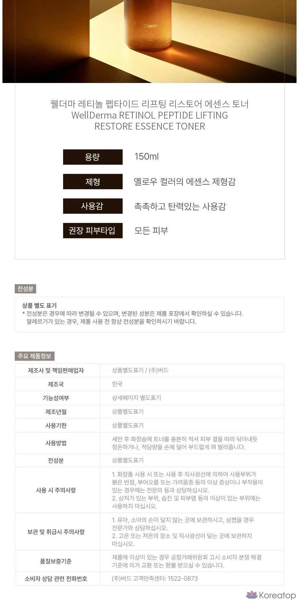 Тоник-лосьон WellDerma Retinol Peptide Lifting Restore Toner, 150 мл, 1 шт.