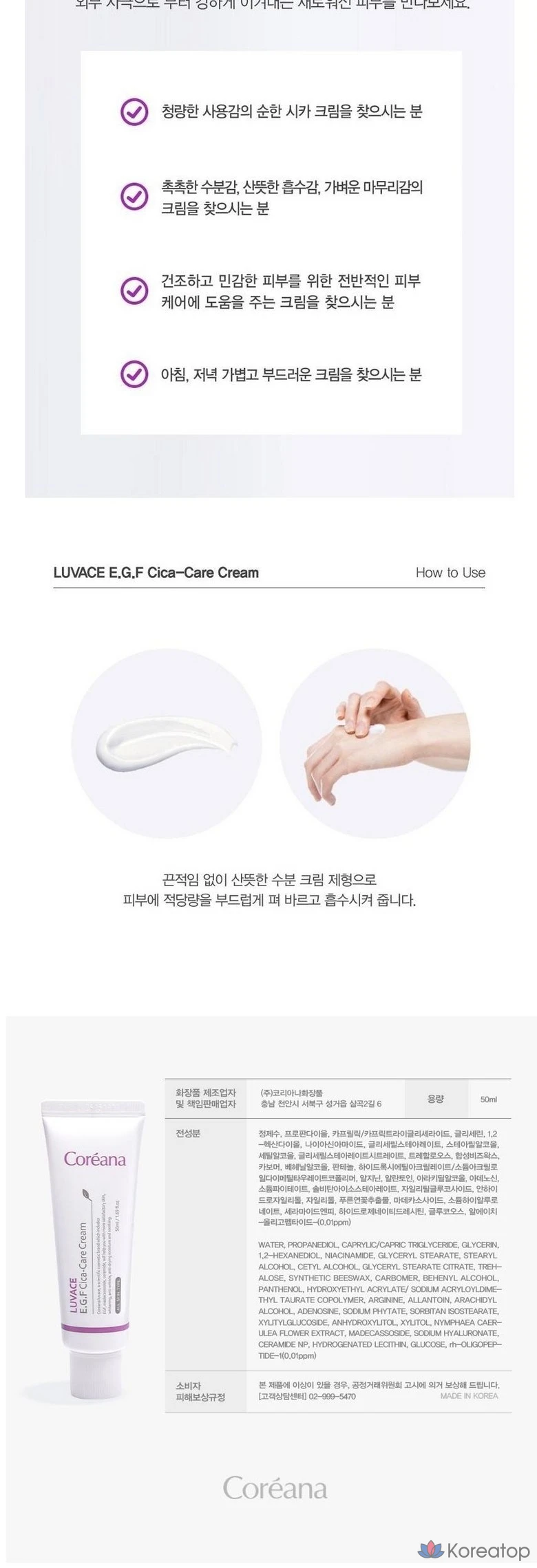Koreana Rubace EGF Cica Care Cream, 50 мл, 1 шт.