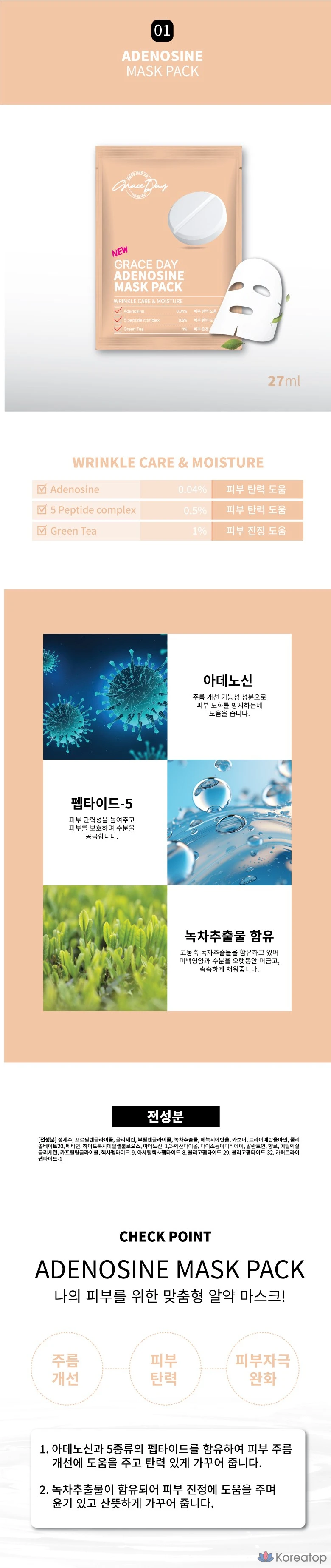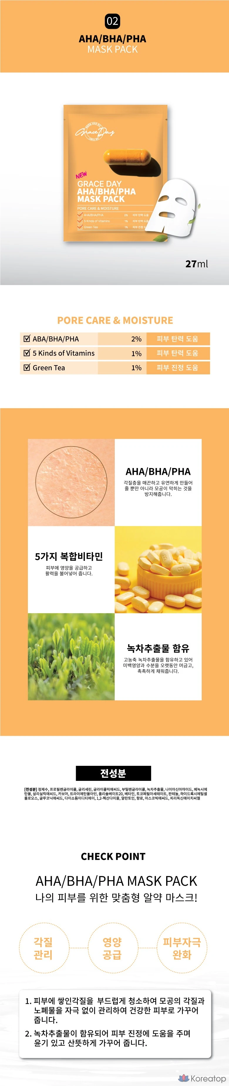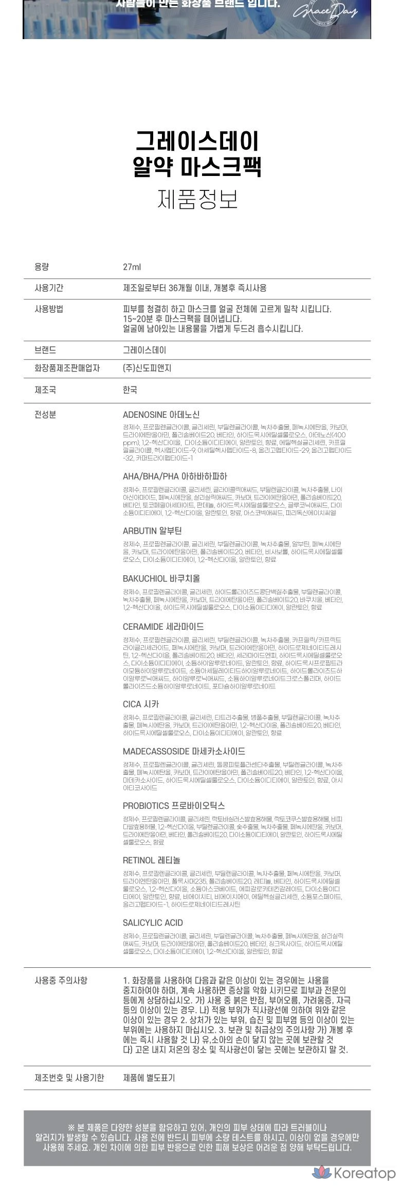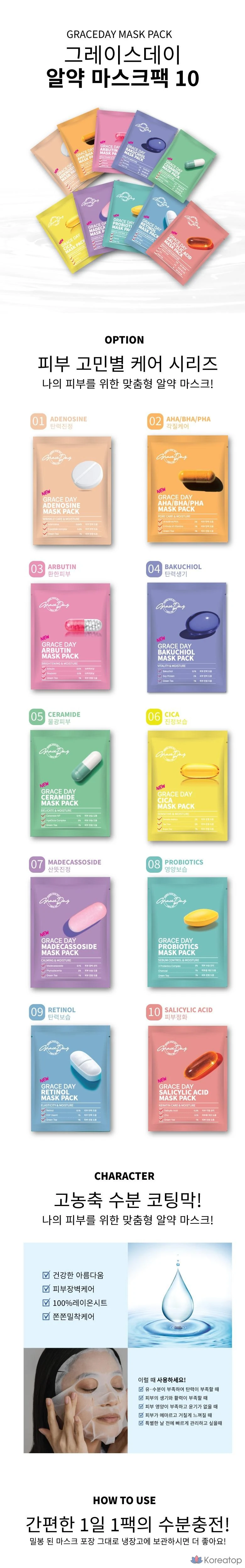 Набор масок для лица Grace Day Pill Mask, 1 упаковка, 100 штук.