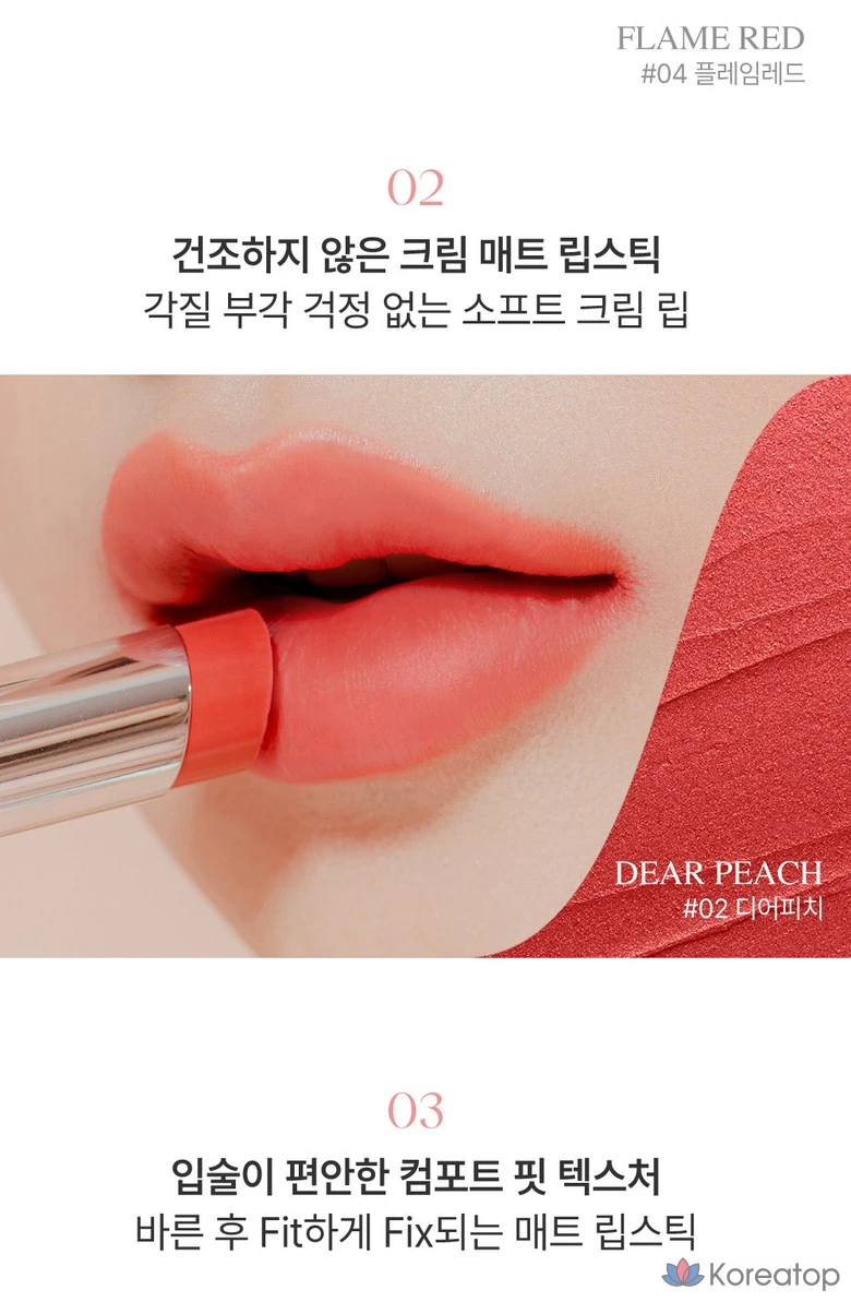 Помада с крем-матовым финишем обеспечивает насыщенный цвет и бархатистую текстуру. Формула комфортно ложится на губы, не сушит и не стягивает кожу. Идеальный выбор для создания выразительного макияжа на каждый день. 💄 Удобный формат в компактной упаковке.