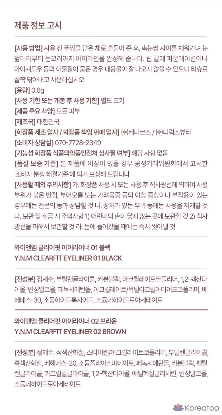 Подводка для глаз YNM Clear Fit, 1 шт., 01 Черный
