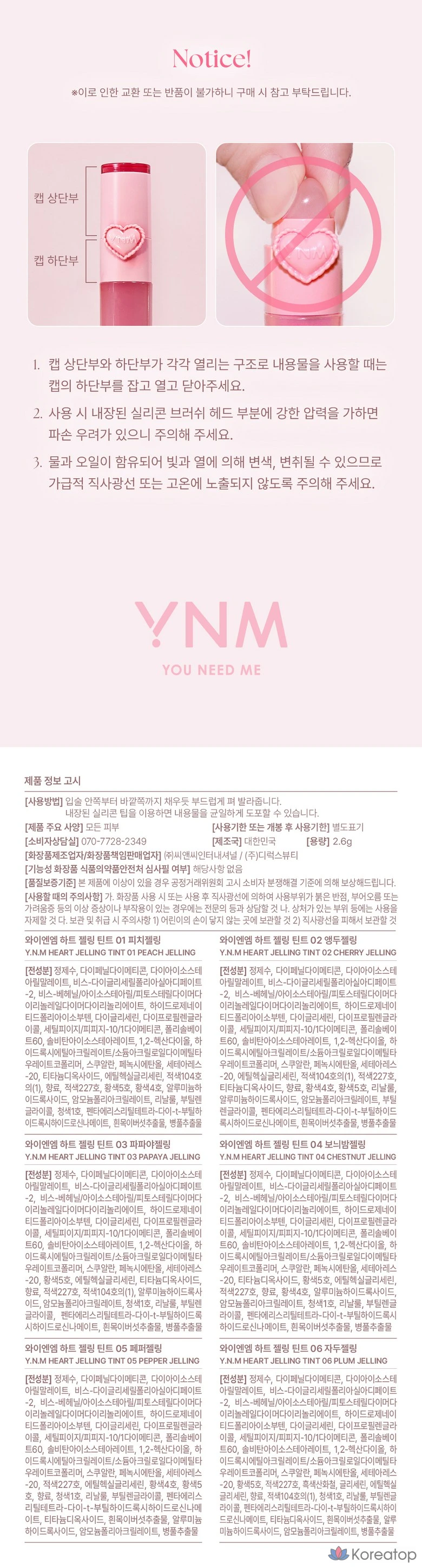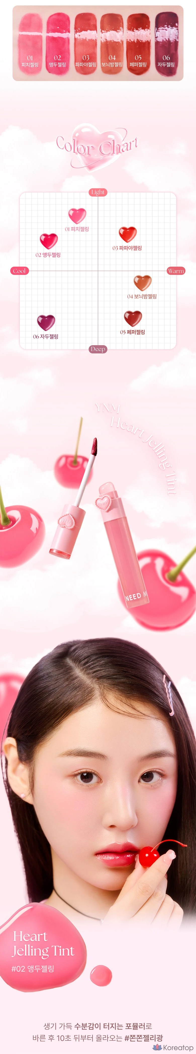 YNM Heart Gelling Tint (со встроенной силиконовой кисточкой), 1 шт., 2,6 г, оттенок 02 Cherry Gelling