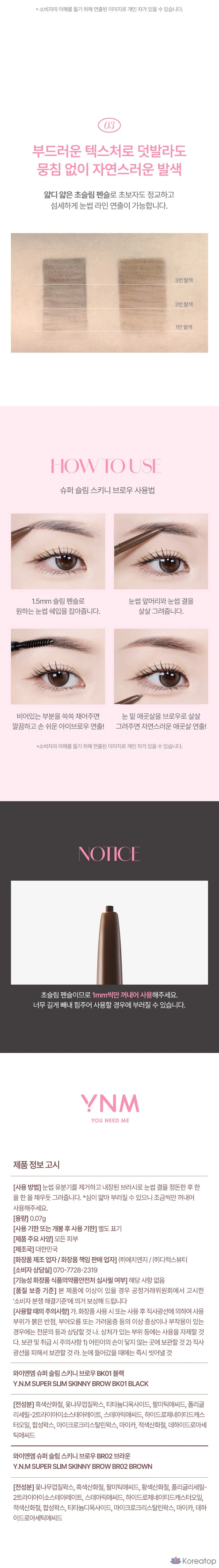 YNM Super Slim Skinny Brow, 1 шт., 01 Черный