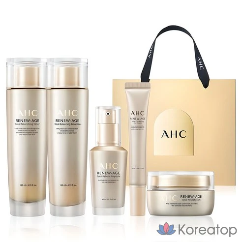 AHC Набор косметики для ухода за кожей лица, антивозрастной, восстанавливающий, корейский; бьюти бокс для женщин RENEW-AGE Total (5pcs)