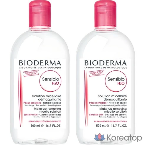 Мицеллярная вода с помпой для очищения нормальной и чувствительной кожи лица Bioderma Sensibio H2O, 500 мл, 2 штуки
