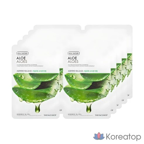 Успокаивающая тканевая маска для лица THE FACE SHOP Real nature aloe, 1 штука, 10 штук