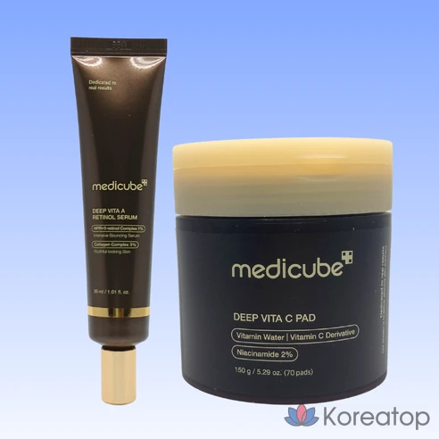Сыворотка Medicube Deep Vita A Retinol 30 мл + патчи Deep Vita C (70 шт.) | Интенсивный уход для упругости и отбеливания кожи