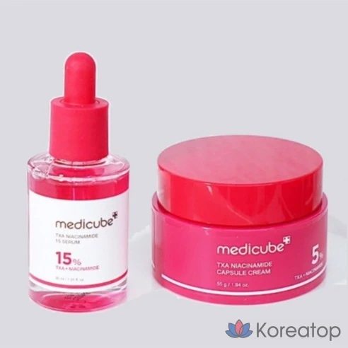 Набор Medicube TXA Pink Toning из 2 предметов: увлажняющий крем-капсула и тонизирующая сыворотка для интенсивного ухода за следами