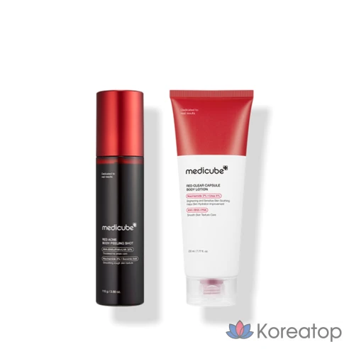 Набор Medicube для самостоятельного пилинга и отбеливания кожи от пигментации (пилинг для тела от прыщей Red Acne + лосьон для тела Red Clear Caps)