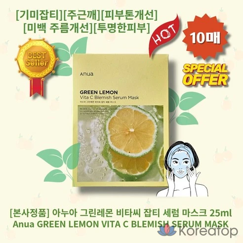[Оригинальный продукт от штаб-квартиры] [Рекомендуется] Горячая маска-сыворотка Anua Green Lemon Vita C для устранения несовершенств, отбеливание, улучшение состояния кожи, разглаживание морщин, прозрачность кожи, увлажнение, веснушки, устранение пятен, улучшение тона кожи, сияющая текстура кожи, низкий уровень раздражения, 1 упаковка, 10 штук