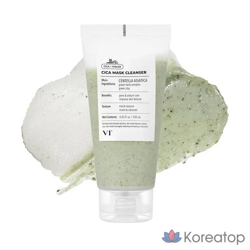 Очищающая маска CICA VT COSMETICS 2-в-1 для умывания лица Невысушивающая глиняная маска Мягкий уход за порами Отшелушивание Увлажнение Для кожи с акне и чувствительной кожи
