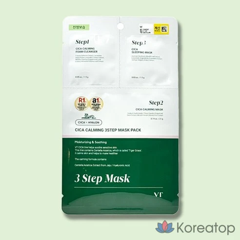 Yiksaengwhal VT Cica Calming 3-Step Mask Pack (4 листа) Очищающая пенка + Успокаивающая маска + Маска для сна, 3 упаковки, 24 г