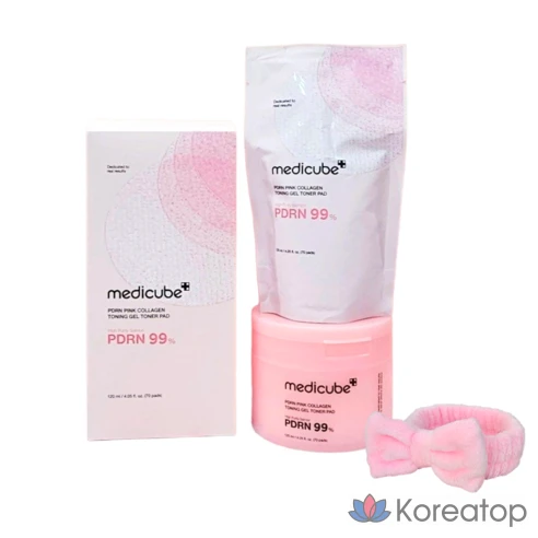 Тонизирующий гель-тонер Medicube PDRN Pink Collagen Toning Gel Pad / Ribbon Cleansing Band Free