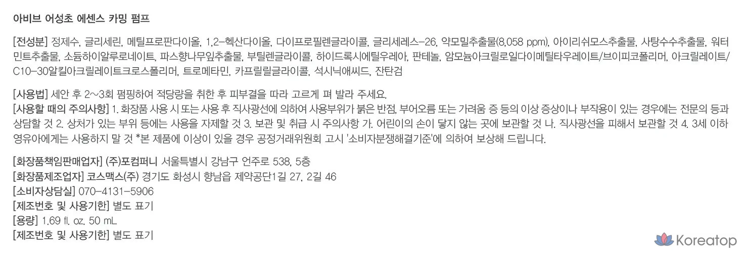 Эссенция Abib Eoseongcho Calming с помпой, 50 мл, 1 флакон.
