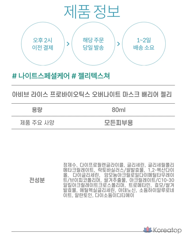 Ночная защитная маска-гель AbiB с рисовыми пробиотиками, 80 мл, 1 шт.