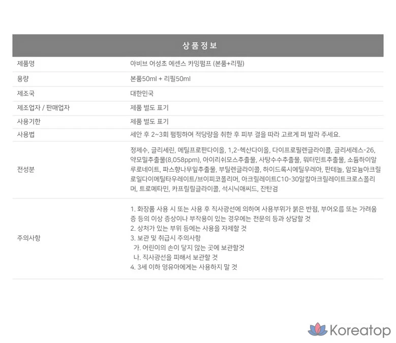 Успокаивающая эссенция Abib Eoseongcho с помпой, 50 мл + 50 мл (сменный блок), 1 шт., 50 мл