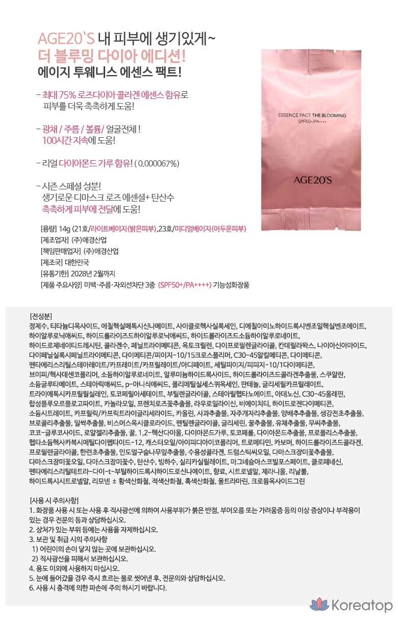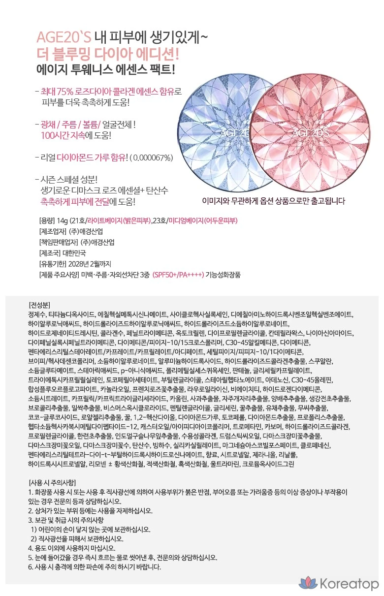 Age20s Double Blooming Diamond Essence Cover Pact Latest Version Основной продукт + Сменный блок + Совместимая пуховка, 1 шт., Double Blooming No. 21