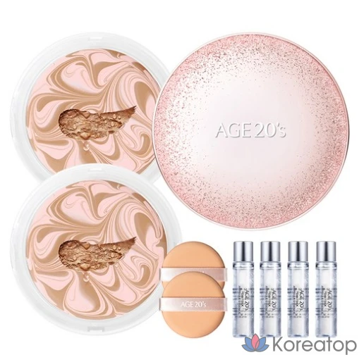 Набор для макияжа Age 20's Essence Cover Pact Sparkle Case + сменный блок 12,5 г x 2 шт. + ампула 10 мл x 4 шт., № 21, белый бежевый, 1 шт.