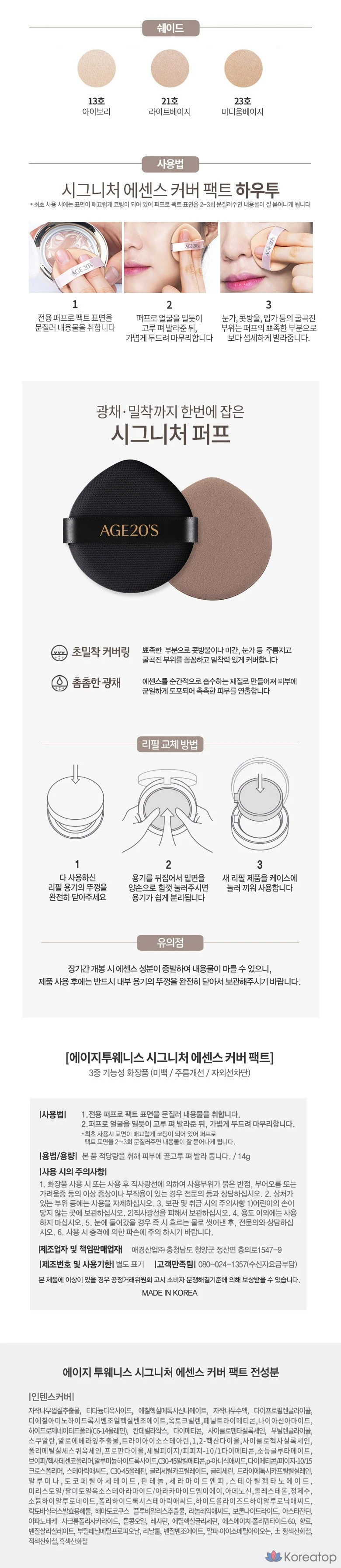Набор из 2 флаконов тонального крема Age 20's Signature Essence Cover Pact Intense Case + сменный блок 14 г, № 23, 1 шт.