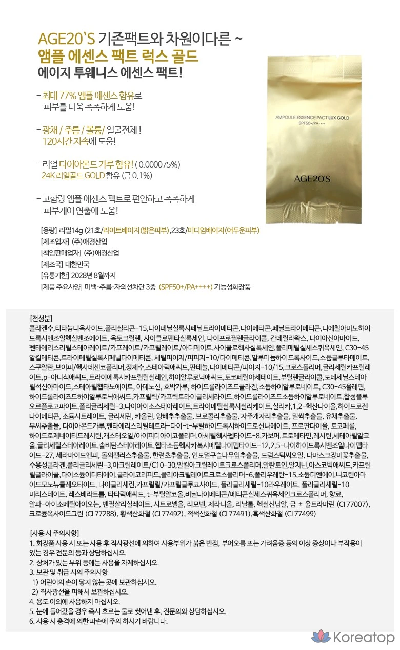 Сменный блок ампул-эссенции Age20s Ampoule Essence Pact Luxe Gold, 1 шт., № 21