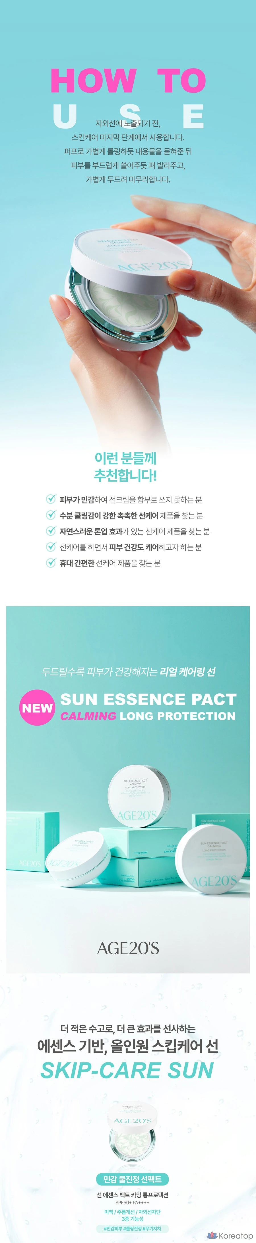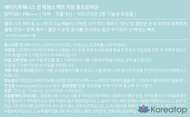 Солнцезащитная пудра Age 20's Sun Essence Pact Calming Long Protection Mini SPF50+ PA++++, 7 г, 1 шт.