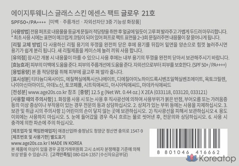 Тональный крем Age 20's Glass Skin Essence Pact Perfect Foundation № 21 12,5 г + набор сменных блоков, № 21 Нейтральный слоновый, 1 шт.