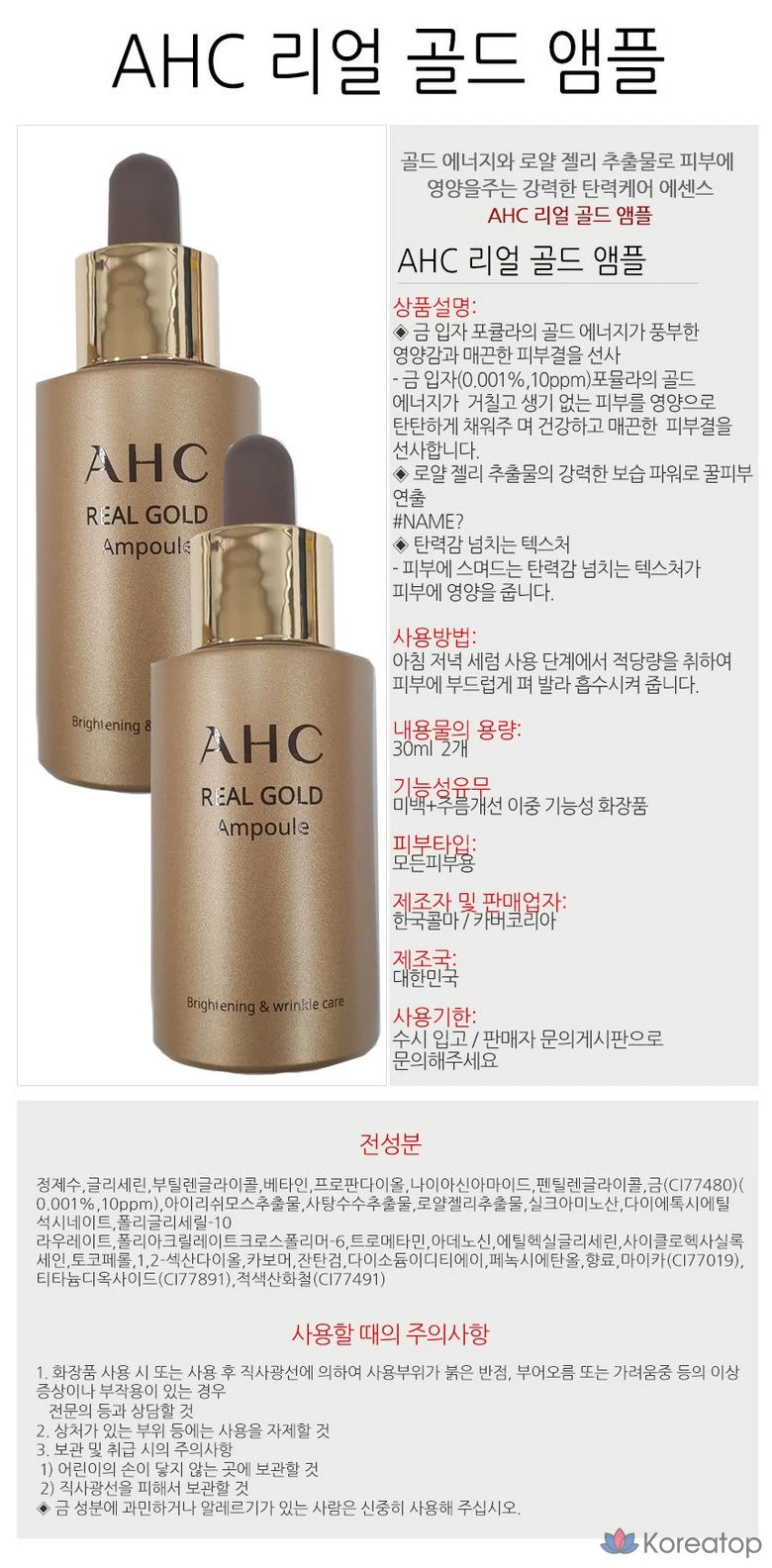 Ампула AHC Real Gold, 30 мл, 1 шт.