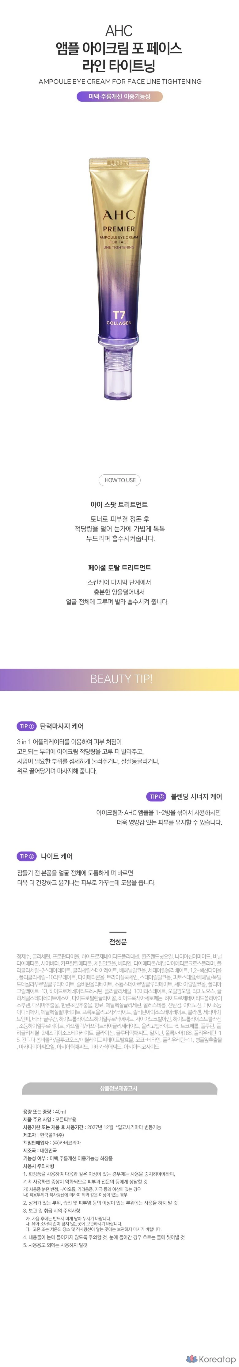 Крем для глаз AHC для подтяжки кожи вокруг глаз, сезон 13, 12 мл, 1 шт.