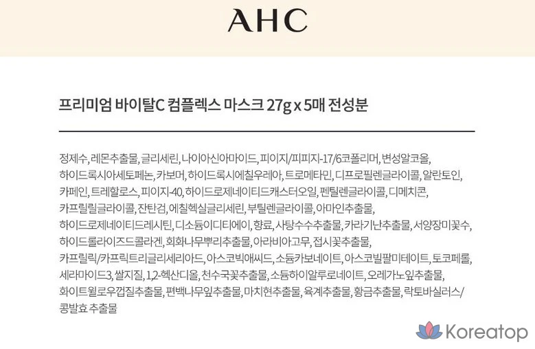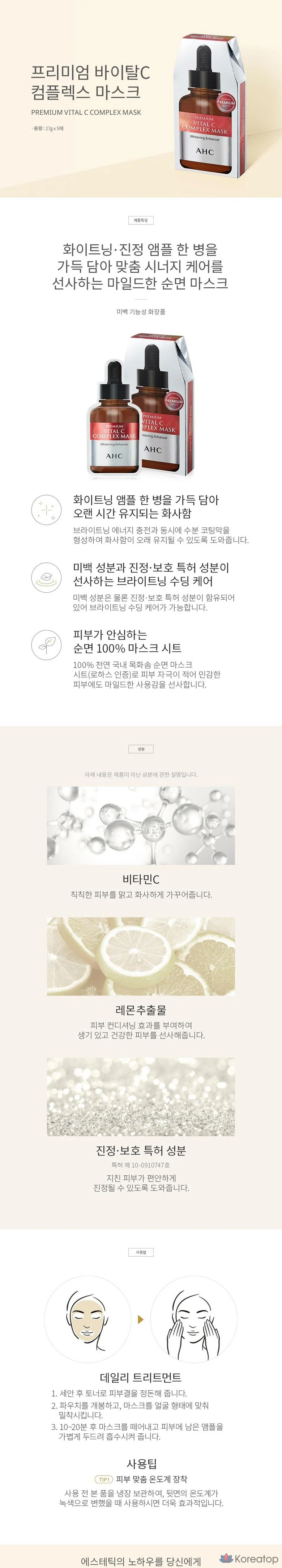 Маска для лица AHC Premium Vital C Complex, 1 упаковка, 1 шт.