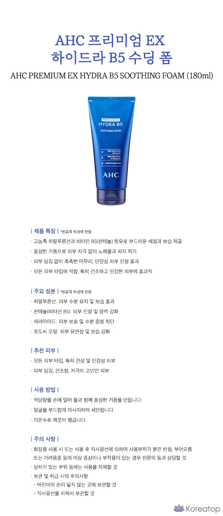 Успокаивающая пенка для лица AHC Premium Hydra B5, 180 мл, 1 шт.